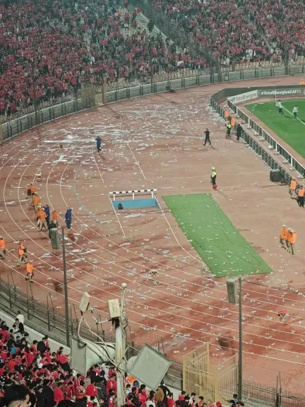 وتوقفت المواجهة لعدة دقائق بعد قيام بعض جماهير الأهلي بإلقاء زجاجات مياه تجاه لاعبي الفريق المغربي، ما استدعى تدخلًا سريعًا من الجهات المنظمة لإعادة الانضباط واستكمال اللقاء.
